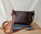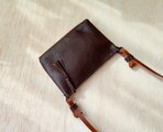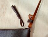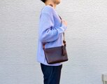 ・ダークブラウンのバッグは、カジュアルからキレイめまで幅広い服装に合わせられます。