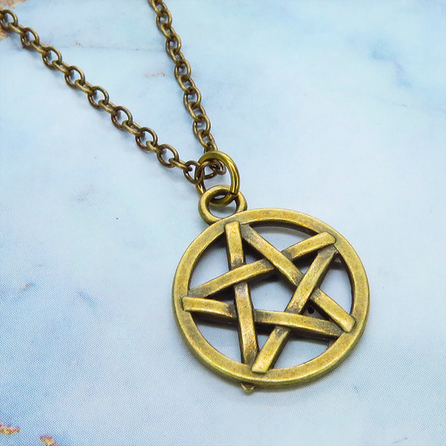 アンティークゴールド ペンタグラム(五芒星)チャームのペンダントネックレス 長さ調整可 アジャスター可