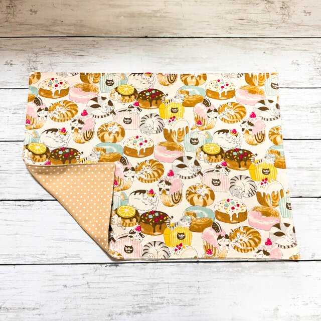 可愛いパンと猫柄のランチョンマット。