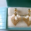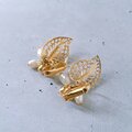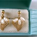 1886年アメリカのニューヨークにて小さな香水会社を創業、1971年に本格的にコスチュームジュエリーの製作を開始したAvon(エイボン)の1993年に販売された“Delicate Dangle”の透かしのリーフとフェイク淡水パールが揺れるデザインのヴィンテージイヤリングです。