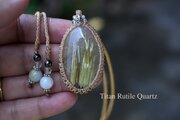 ばっちり黄金★タイタンルチルクォーツ マクラメネックレス2193