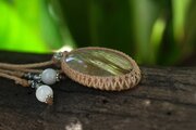◆このたびはキャラメル色の蝋引き糸を使用しマクラメ編み装飾を施しました。