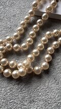 グラスパールならではの重みとプラスチックパールよりも適度な重さがあり、表面もキメ細かく、より美しい輝きと微妙な色合いが特徴です。 繊細な美しさがあるため高級感が感じられます。