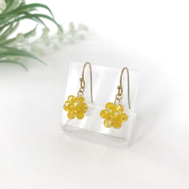 #ミモザ #黄色 #ビーズボール #立体的 #ボールピアス #まる #軽い #夏 #ビーズアクセサリー #春 #ビーズ編み #イエロー #華やか #鮮やか #大人かわいい #可愛い #小ぶり #シンプル #ピアス #フック #ポップ #ビーズ #小さめ #誕生日 #プレゼント #ギフト