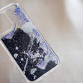 ケースはクリア素材なので、中のグリッターが動くたびにスマホ本体のカラーが顔を出します。本体の色との重なりも、ひとつのアートとして楽しんでみてください。