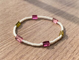 ホワイトのヴィンテージビーズを合わせ、色のニュアンスがより際立つよう仕上げました。