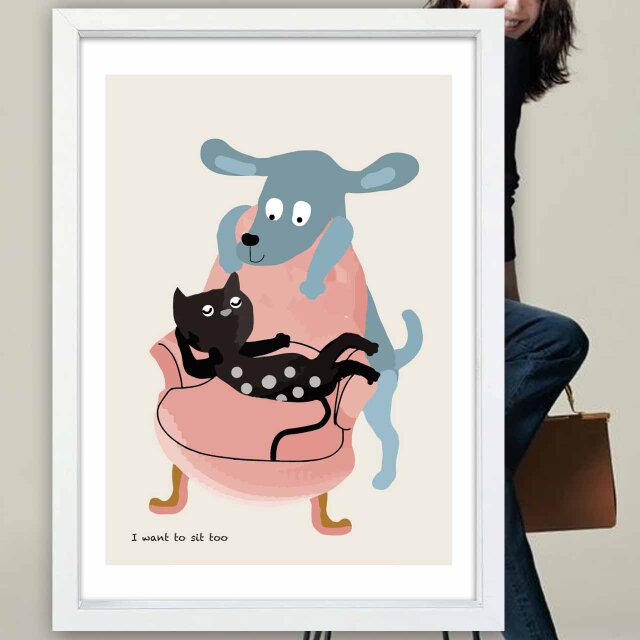 ボクも座らせて〜 犬 ネコ 送料無料 どうせなら楽しいポスター ポスター アートポスター アート/sei検索新着順 2623