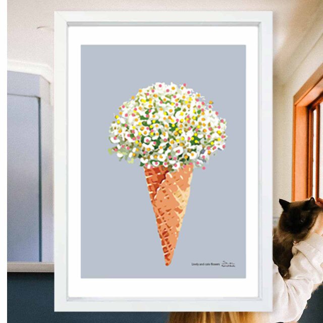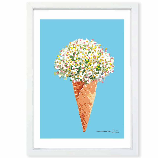 コーンに指した元気な小花 小さな花が主張するフラワーポスター。