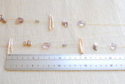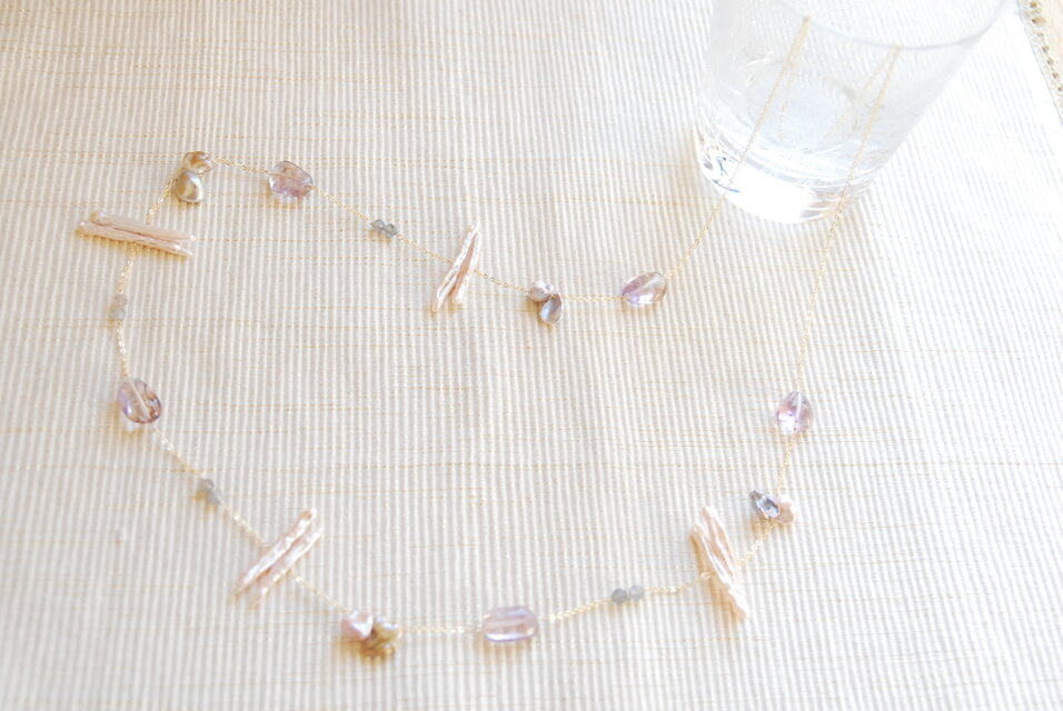 再販 ピンクアメジストとスティックパールの春のネックレス14kgf