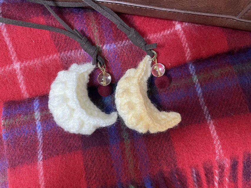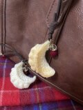 やわらかな糸で編んだ、立体感のあるぎょうざモチーフのチャームです。