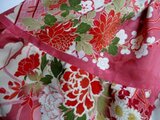 牡丹の花、梅の花、菊の花が描かれた着物で作りました。