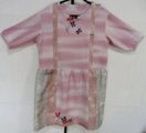首周りは、丸首にして、左肩を開け、包みボタン2つとループで留めるようにしています。