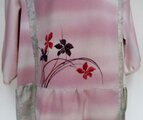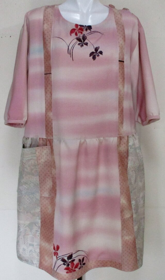 正絹の花柄の着物と紬の着物などを組み合わせて作りました。