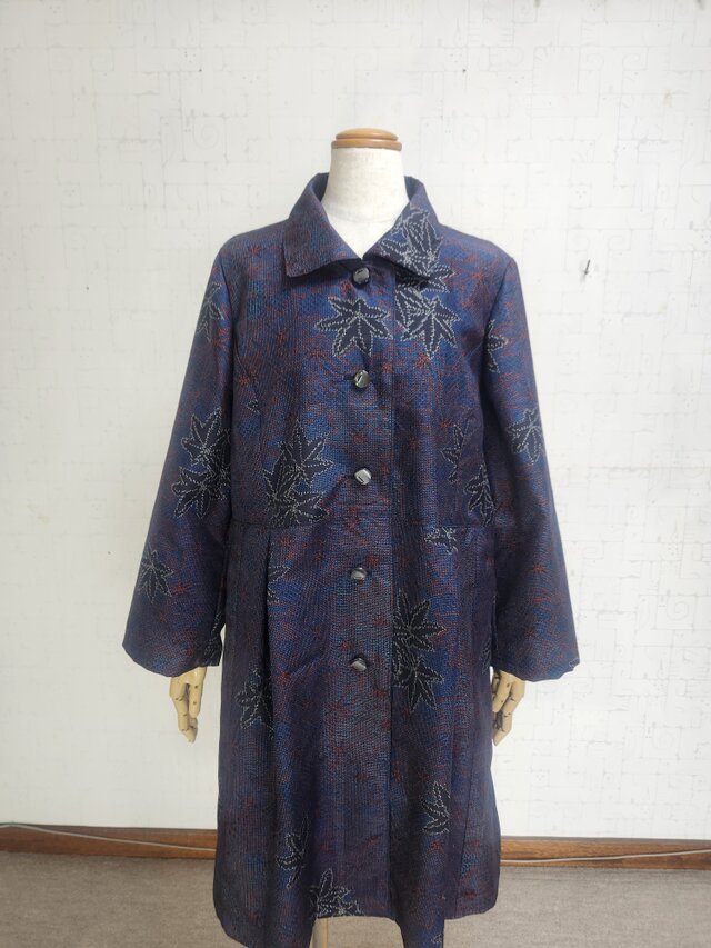 紺地に、楓模様が描かれている十日町紬(絹)からお作りしました。