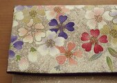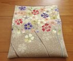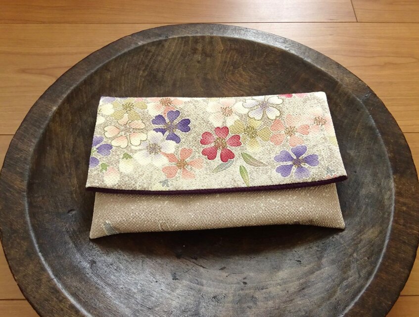 しぼのしっかりとした縮緬に桜(?)の様な花が描かれた優しい雰囲気の長着から仕立てたお懐紙入れです。