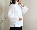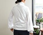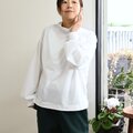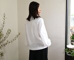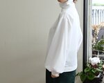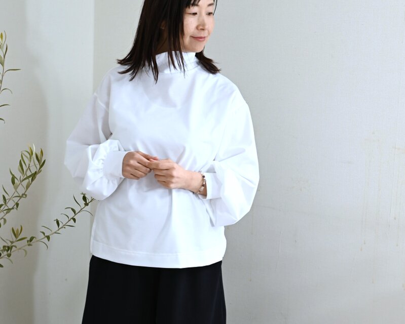 お袖はボリュームを持たせたバルーンスリーブですがスッキリ見えも意識したフォルムにサイドスリット入れたバランスのとれたデザインです。
