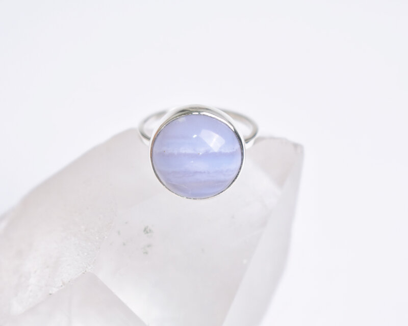 カボションカットのつるんとした丸い形が可愛らしいブルーレースアゲート。