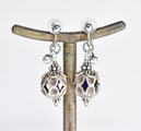 鳥かごの様なカレンシルバー、隠れブルービーズ、インドシルバー鈴を繋いだイヤリングです。