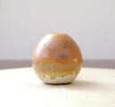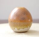 上には独特の結晶が美しい山吹色の釉薬を、下はあたたかな雰囲気のマット釉をかけ分けています。