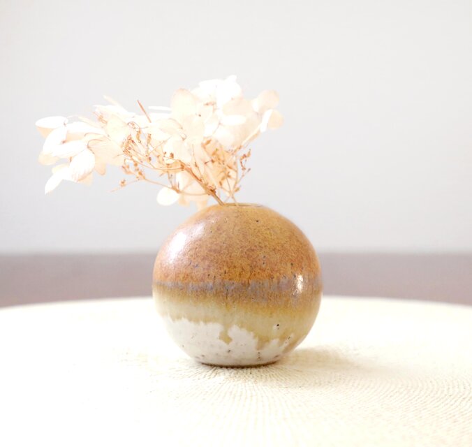 陶器らしい温もりを感じさせてくれる荒目の赤陶土を、ころんと丸い球体をイメージしてろくろで引き上げ制作した一輪挿しです。