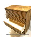 引出し前板のデザインは貼り合わせでは無く一枚ものから一本一本加工する溝状のデザインで、加工には非常に手間がかかる高コスト仕上げになります。