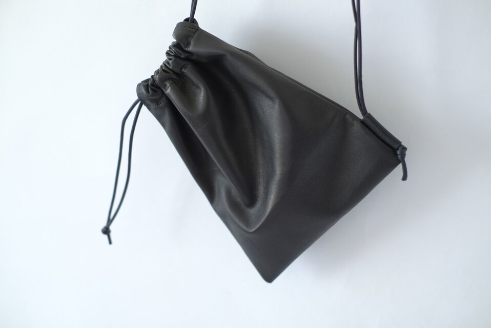 手触りの良い柔らかなラムレザーを使用した巾着タイプのサコッシュ。