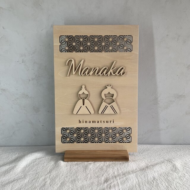 お子さまの大切な初節句を、やさしい木のぬくもりで彩る名入れオーダーの木製お雛様パネルです。