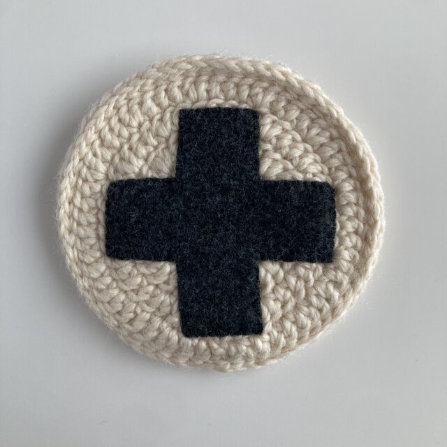 WOOL!クロッシェコースター*オフホワイト×チャコールフェルトのクロス