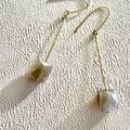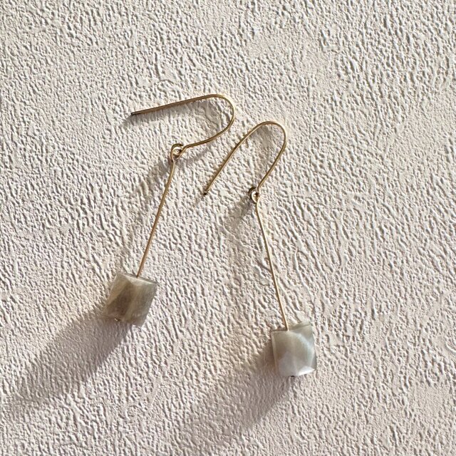 ムーンストーンのグレージュの色がとても素敵なので、シンプルでクールな揺れるピアスに仕立てました。
