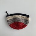 WOOL!かぎ針編みのポーチ*黒×赤×グレーベージュ×きなり*ラウンド