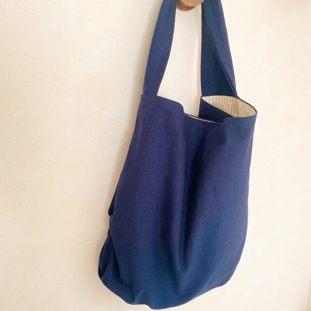 ワンハンドルトートバッグ 大人のトートバッグ 持ちやすい 軽くて便利 普段使い シンプル きなり色 ストライプ 11号帆布のトートバッグ 新生活 通勤 通学