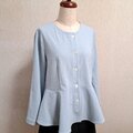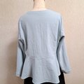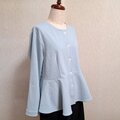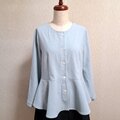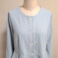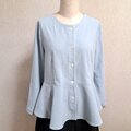 コットンリネン ペプラムジャケット ライトブルー ノーカラージャケット 綿麻 水色 Lサイズ