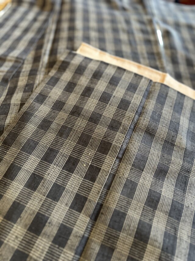 濃い茶色地に細い縞の格子織