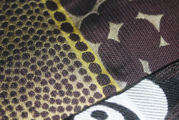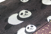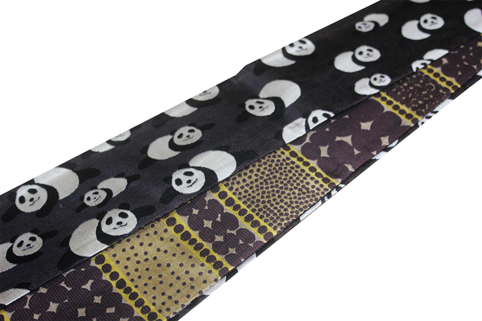 セピア調の地色に、生き生きとした表情のパンダを織り出しました。プリントでは決して表現できない、織り組織の凹凸がパンダに立体感と温もりを与えます。大人の装いに、さりげない「可愛げ」を添える意匠です。