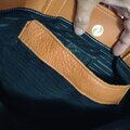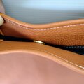 革の質感は程よい硬さで厚みもあり高級感あるバックです。