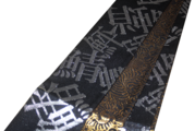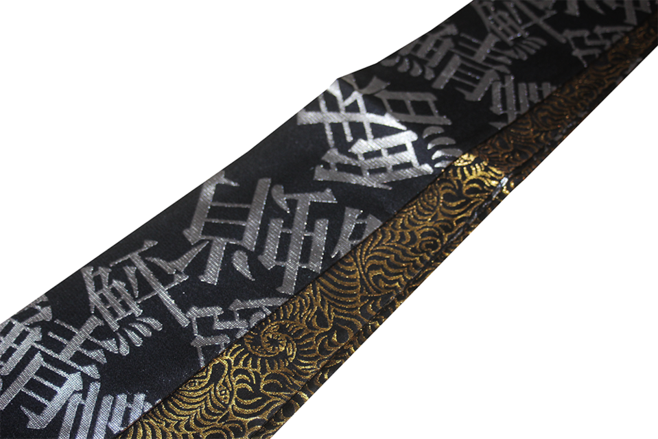 漆黒の地に、銀糸で緻密に織り出された「鮪」「鯛」「鮭」といった鮨ネタの漢字。光の角度で文字が美しく浮かび上がり、単なるユーモアを超えた、工芸品としての高い完成度を誇ります。お出かけ先での話題を独占する、最高に「粋」なデザインです。