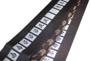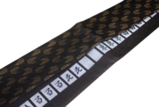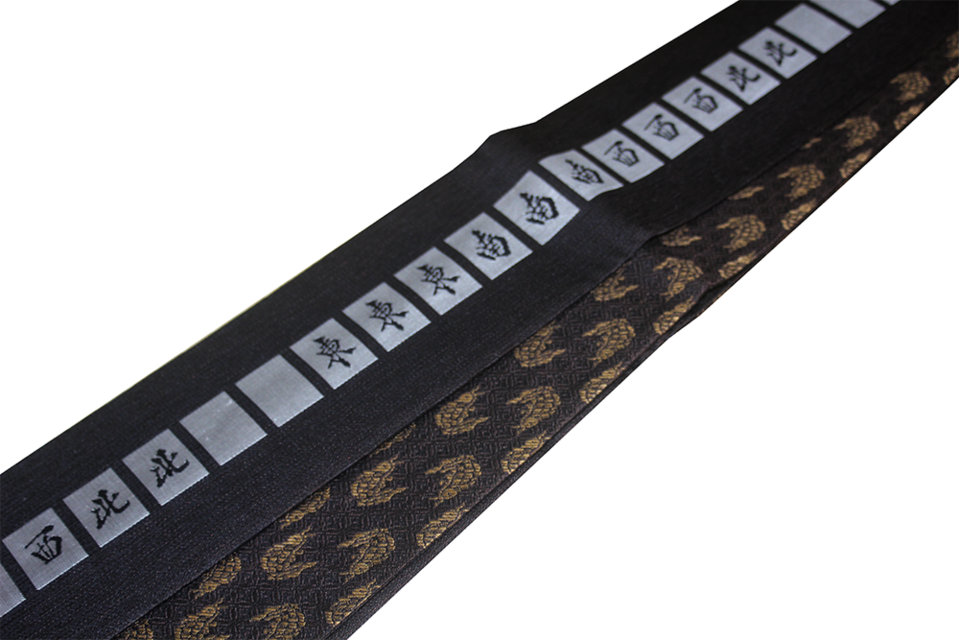 絹糸で鮮烈に浮かび上がる「東・南・西・北・白・」の漢字。麻雀における役満の最高峰を、西陣織の緻密な織組織で表現しました。光の角度で文字が知的にきらめき、単なるパロディを超えた、職人の技が光る「粋」なデザインです。