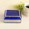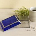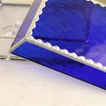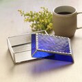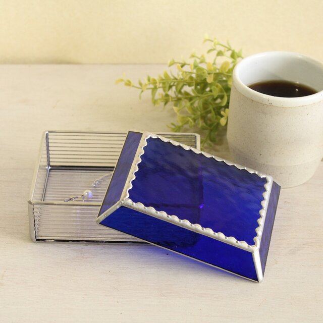 夜空のように深みのあるブルーガラスに銀色のふちどりが映える小物入れです