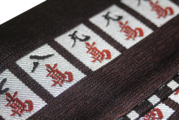 西陣の織元「蔦屋久兵衛」の工房にて、織士が自ら機(はた)に向かい、麻雀の最高峰「九蓮宝燈」をテーマに織り上げた正絹リバーシブル角帯です。