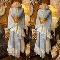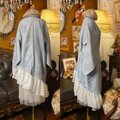 淡いグレーの地に、まるでアンティークタイルのような緻密な幾何学模様がパッチワーク状に構成された、コンテンポラリーなリメイクです。無機質な幾何学柄と、裾の白レースのコントラストが絶妙。 2way仕様により、羽織としてもワンピースとしても◎