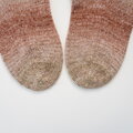 編み地を染める事で、市販の毛糸にはない色の揺らぎ、そしてロングピッチのグラデーションになっています。