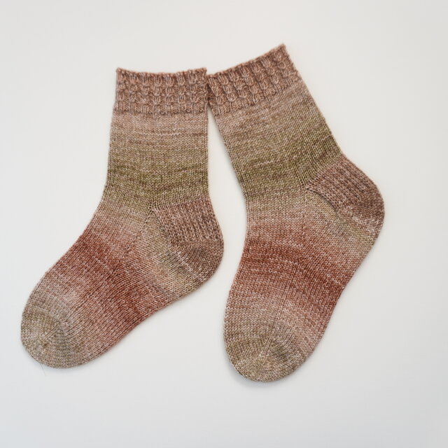 2本どりで編み機で編んだ毛糸を染めて編みました。