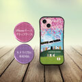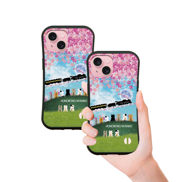 グリップケース iPhoneケース【ほのぼのにゃんこ(さくら銀河鉄道)】(名入れ可)