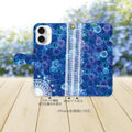 iPhone専用 手帳型スマホケース (カメラ穴あり/はめ込み式/スタンド機能付き)【ブルーローズⅥ】