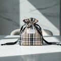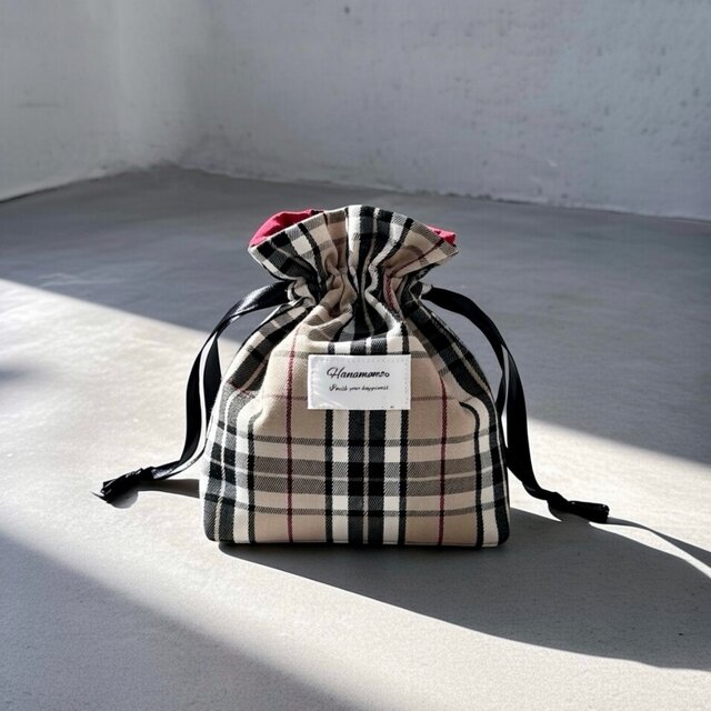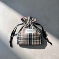 小さめバッグにもスッキリ収納/メイクポーチ・サニタリー・小物入れ/黒・ベージュ・白・赤/バーバリーチェック巾着ポーチ