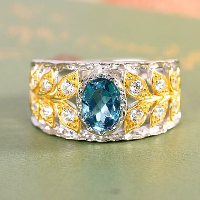 ブルートパーズリング - 自然の優雅さを表現する葉のデザイン R459