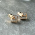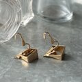スクエアとトライアングルが組み合わさった、ゴールドトーンドアノッカーイヤリング。
