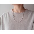 グレーパールの柔らかな光沢と、ヘマタイトのシャープな質感が「こなれ感」を演出するミニマムネックレス。