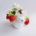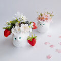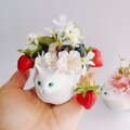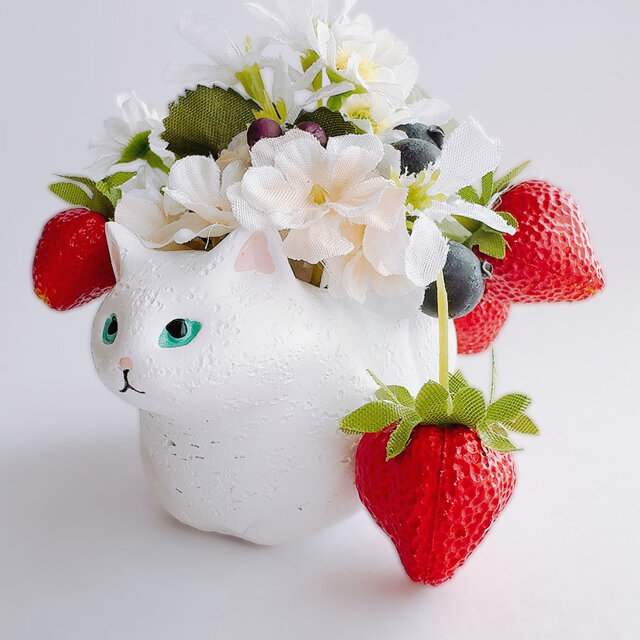 やさしい風合いのある猫のフラワーポットに、厳選した高品質のアーティフィシャルフラワーをあしらいました。
