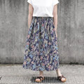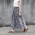 ★新作 上質・綿麻生地 水彩画風 ボタニカル・ガーデン ギャザースカート(ネイビー)リネン 麻 ロング マキシ ポケット